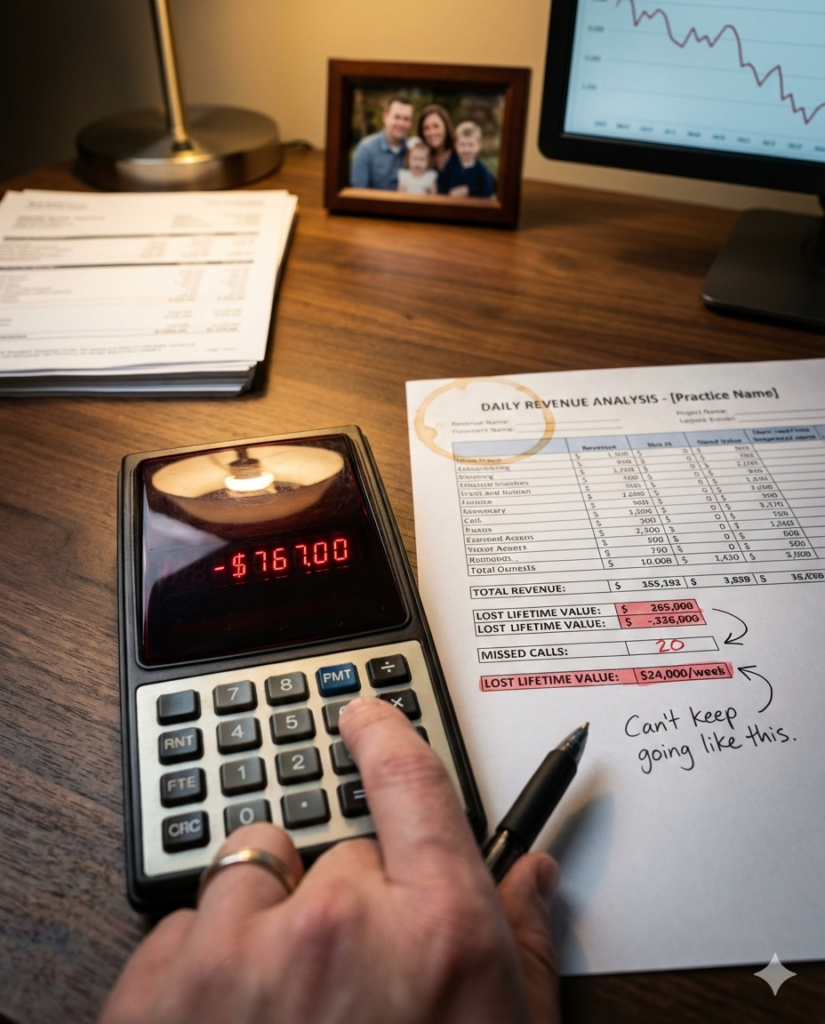 The specific dollar figure you are losing monthly to missed calls, slow response times, and after-hours inquiries. Calculated using your current call volume and industry conversion benchmarks.