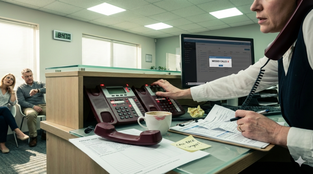When Sarah finally picks up on ring four, she is flustered. She is trying to check in Mrs. Johnson while dealing with an insurance verification. She rushes the new patient. She does not ask qualifying questions. She books them for the wrong appointment type or forgets to send the confirmation.